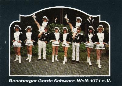Bensberg war aus dem karnevalistischen Dornröschenschlaf aufgewacht. Anfang 1971 begannen Walter Langohr und Rolf Klever mit der Umsetzung, eine neue Karnevalsgesellschaft in Bensberg zu etablieren, aus der am 18. September 1971 im Verbund mit 15 weiteren Karneval begeisterten Bensberger Bürgern die KG Bensberger Garde Schwarz-Weiss gegründet wurde.
