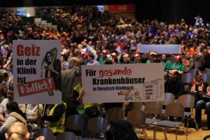 Aus ganz NRW waren rund 3.500 Vertreterinnen und Vertreter der Krankenhäuser gekommen, um ihrem Unmut über die Gesundheitspolitik der Bundesregierung Ausdruck zu verleihen und so die 250.000 Beschäftigten in 40 verschiedenen Berufsgruppen zu repräsentieren.