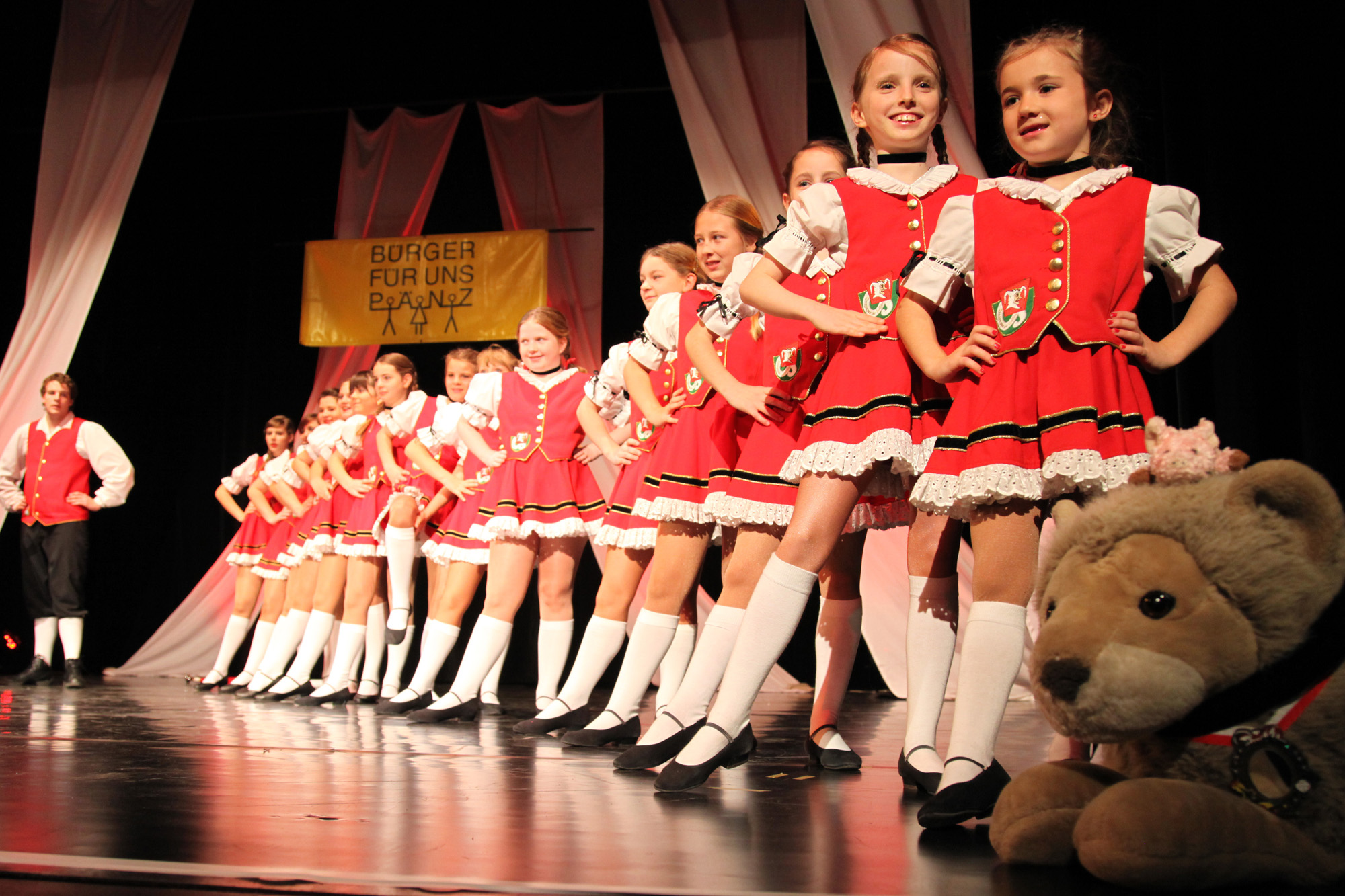 • Zum Abschluss wirbeln die Strunde-Pänz, die Kindertanzgruppe der „Großen Gladbacher“, in atemberaubenden Tänzen über die Bühne.