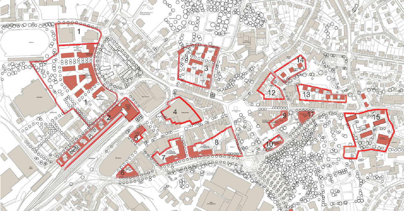 - eine bauliche Entwicklung auf dem Kopfgrundstück am Bahnhof (Thema „Neubau städtischer Verwaltungsgebäude“)