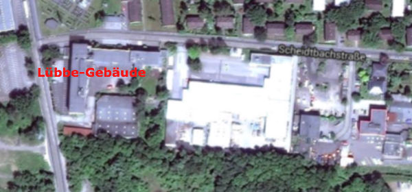 Das Lübbe-Gebäude am Rande des Gewerbegebietes Zinkhütte.