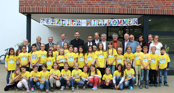 Rund ein Jahr nach dem ersten Spatenstich feierten die Gemeinschaftsgrundschule Paffrath und die Stadtverwaltung als Bauherrin und Eigentümerin die Einweihung der neuen Turnhalle mit Umkleiden-Trakt.