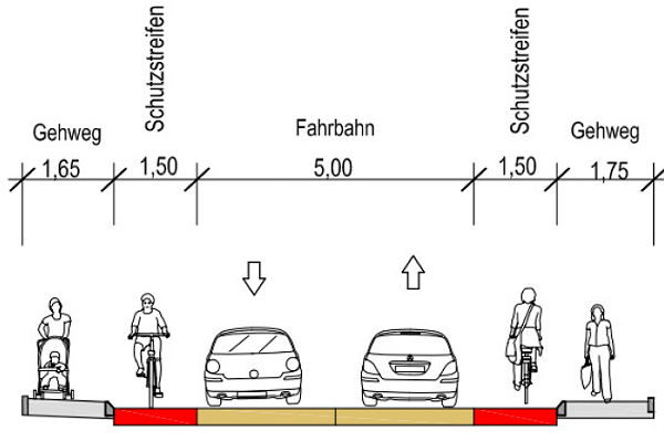 Ein Radschutzstreifen darf von Autos überfahren werden, eine Radfahrstreifen darf nur von Fahrrädern befahren werden.
