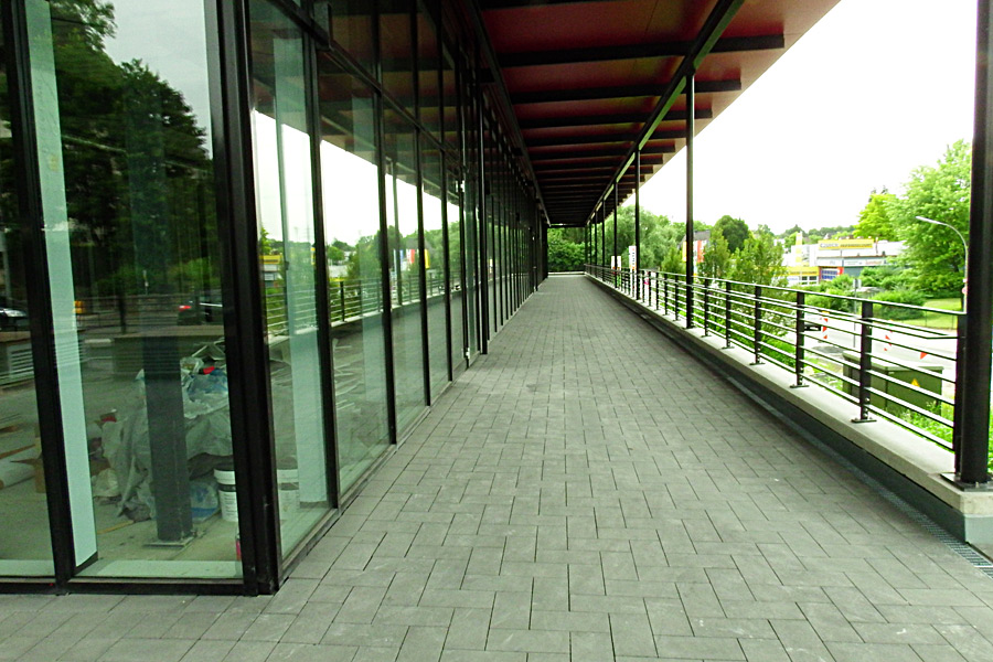 Und die Gestaltung mit Glas und den farbigen Dächern fand ich ansprechend. Es hat Inselcharakter, denn es ist immer noch ein Verkehrsknotenpunkt mit viel Autoverkehr drumherum, darum auch laut. Hoffentlich können sich die Geschäfte halten. Denn bis auf den Ankara-Markt haben alle Konkurrenz im Kaufland, auch der Bioladen. Schöner als vorher ist es allemal.