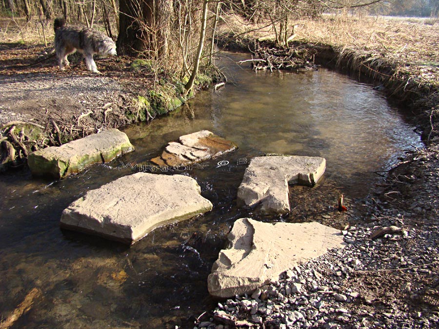 Mutzbachfreunde und Einheimische kennen die Stelle, an der vor ein paar Jahren Trittsteine für Wanderer und eine Furt für Pferde angelegt wurden. Die Furt für Pferde ist immer noch passierbar. Aber die Trittsteine verlangen auf der Kurvenseite vom Wanderer immer längere Beine und größere Schritte.