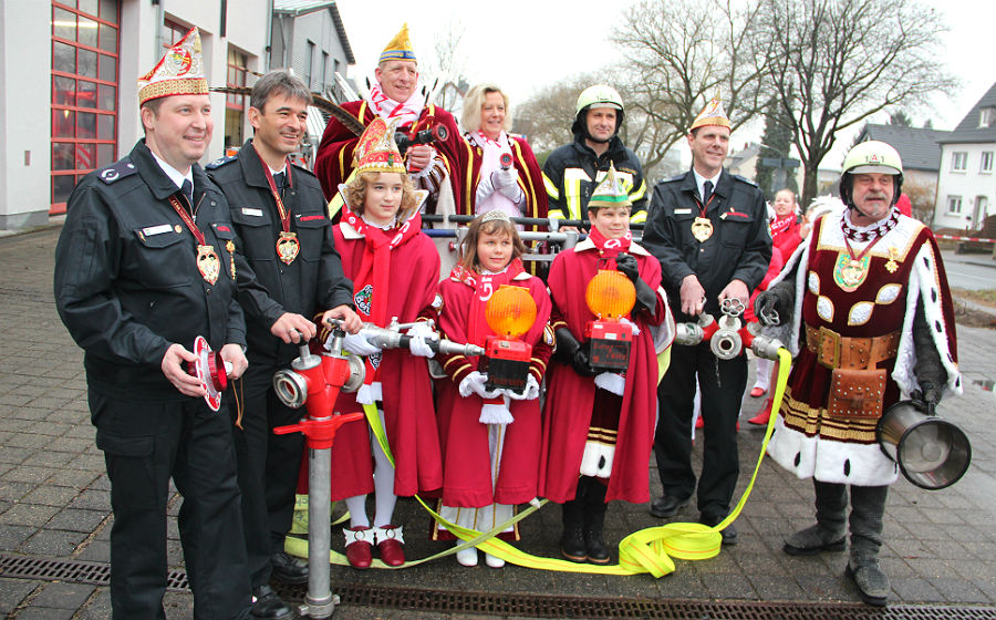 Das Bergisch Gladbacher Dreigestirn hat gemeinsam mit dem Kinderdreigestirn die Feuer- und Rettungswache Nord an der Paffrather Straße besucht. Dabei hatte das jecke Trifolium sichtlich Spaß bei den Aufgaben, die ihnen die Frauen und Männer der Feuerwehr gestellt hatten, um das begehrte Ehrenzertifikat für brandschutztechnische Kenntnisse zu erlangen.