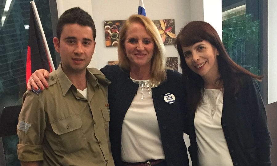 Petra Hemming mit Jonathan Arbov und seiner Mutter Monica Arbov in Ganey Tikva
