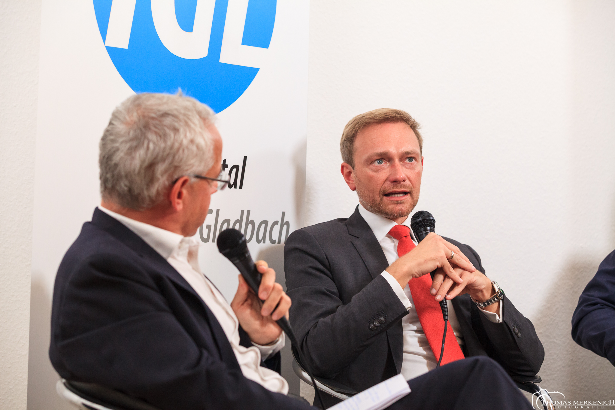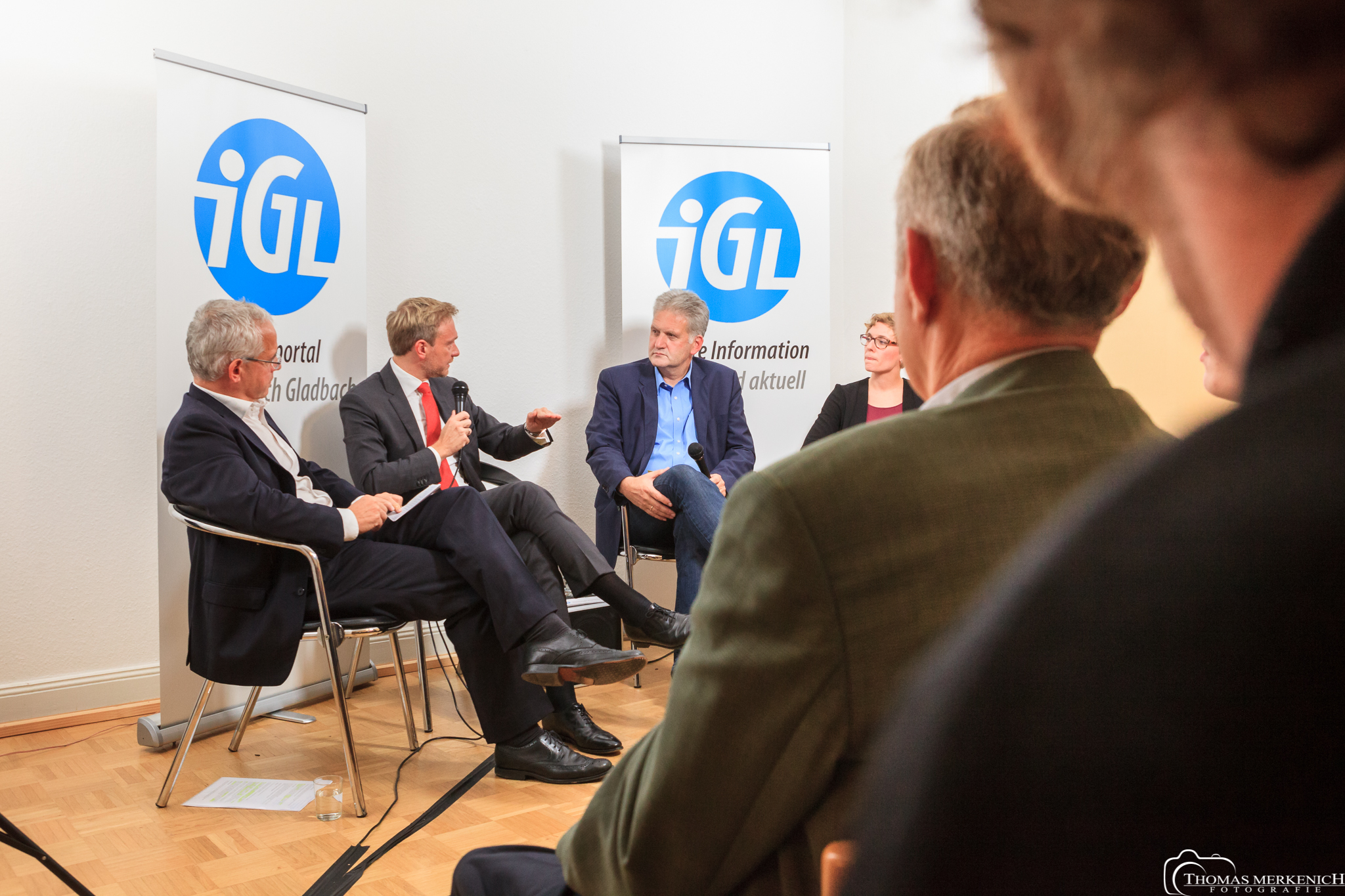 Christian Lindner im Gespräch mit Martin Wiegelmann, Georg Watzlawek, Laura Geyer. Foto: Thomas Merkenich