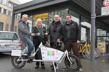 Das Mobilitätsmanagement der Stadt hat mit Fördergeldern ein Lastenrad gekauft, das dank Elektromotor auch Anhöhen überwinden kann. Zu mieten ist es in der Radstation, für eine kleine Gebühr.