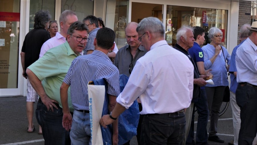 Seit rund sechs Wochen laufen die Entkernungsarbeiten des Baukörpers des ehemaligen Kaufrings bzw. Löwencenters. Die Händlerschaft hatte schon seit Monaten angekündigt, die Sanierung des Kaufhauses zu begrüßen“, erläutern Markus Kerckhoff vom IBH-Vorstand und der ISG-Vorsitzende Olaf Schmiedt, die großzügig für Speis und Trank sorgten. Von Seiten des Investors Marktgalerie nahm Engelbert Leibl an der Veranstaltung teil.