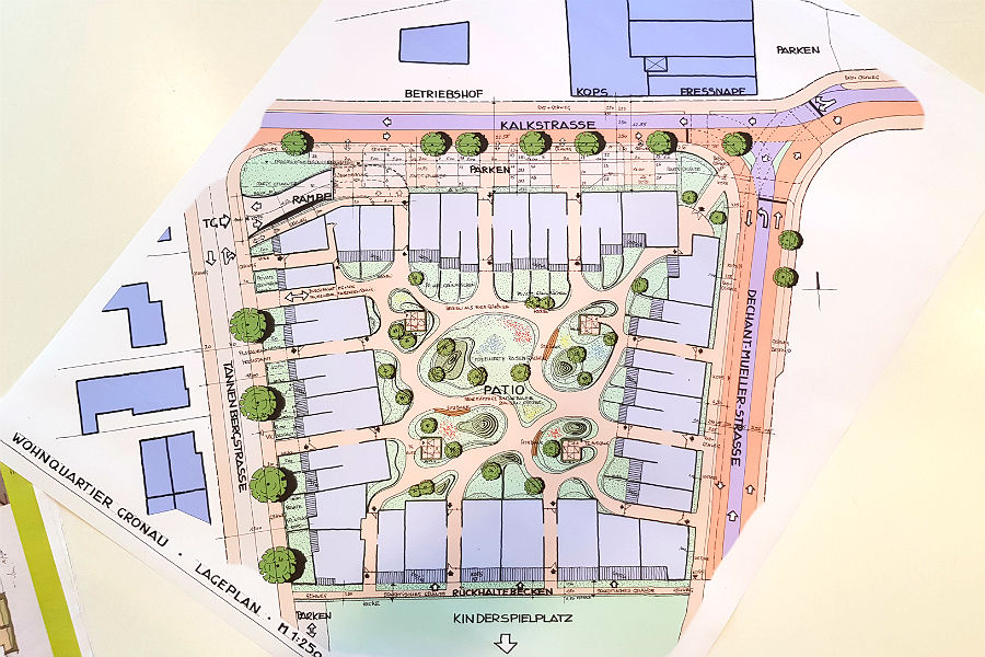 Eine Anmerkung zur Verkehrsplanung, die mit dem Bauprojekt nur indirekt zusammenhängt: Ein Weiterbau der Kalkstraße wie in der Karte skizziert würde das Gebiet um den Gronauer Kreisel nicht wie behauptet ent-, sondern im Gegenteil be-lasten. Nicht nur würde die neue Straße zusätzlichen Verkehr anziehen, es kämen zu den ohnehin zahlreichen (Ampel-)Kreuzungen auf engem Raum zwei weitere hinzu. Wenn das Ziel ‘totaler Stillstand’ lautet, dann weiter so!
