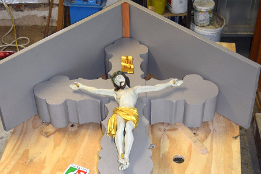 Das Kreuz wurde seit Januar von den Restauratoren Bennemann & Ellermann in ihrer Werkstatt in Köln-Kalk  aufwendig restauriert. Sein Holzkern war rissig und drohte aufzuspalten, der Fuß war teilweise morsch und das Dach war sanierungsbedürftig.