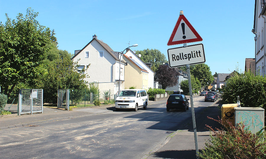 In der Innenstadt trägt ein Abschnitt der Gierather Straße eine Spritzdecke, auch dort wurden Splitt und Sand aufgebracht.