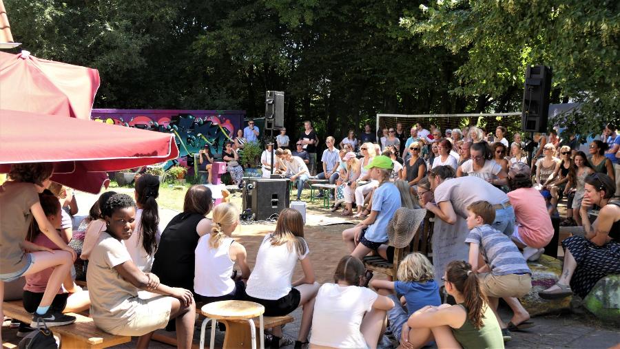 Obwohl die Präsentation aufgrund der hohen Temperaturen nur in einer gekürzten Fassung startete, schafften es die Akteure, einen umfassenden Einblick in ihre Arbeit zu geben. Abkühlung mit Eis und Plauderrunde stand im Anschluss an die Präsentation im bunten Café der KREA im Fokus.