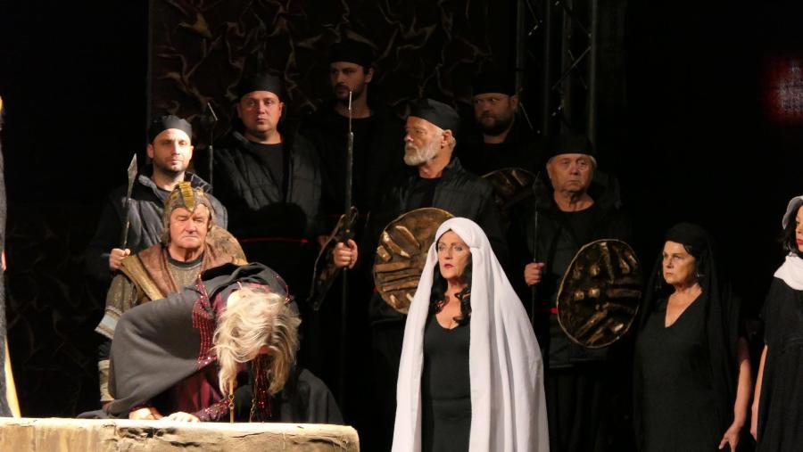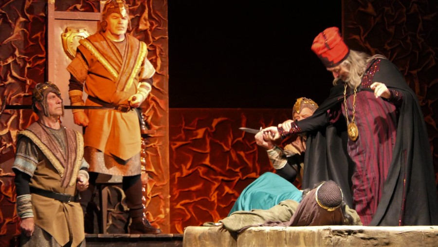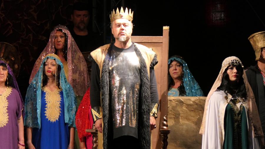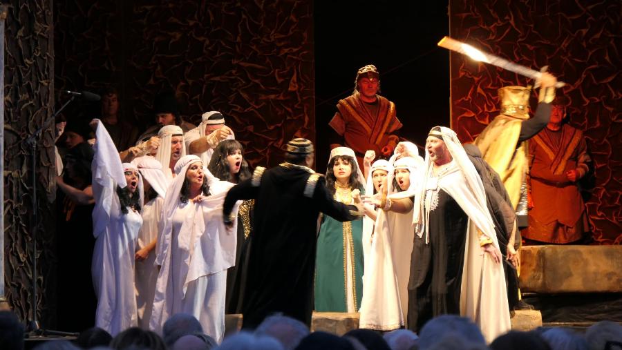 „Nabucco“ besticht durch die Chorauftritte und Massenszenen, in der Inszenierung von Oldrich Kriz, der auch den Gran Sacerdote gab, erzeugten schnell gewechselte Kostüme und Rüstungen mit entsprechender Beleuchtung einen Farbenrausch.