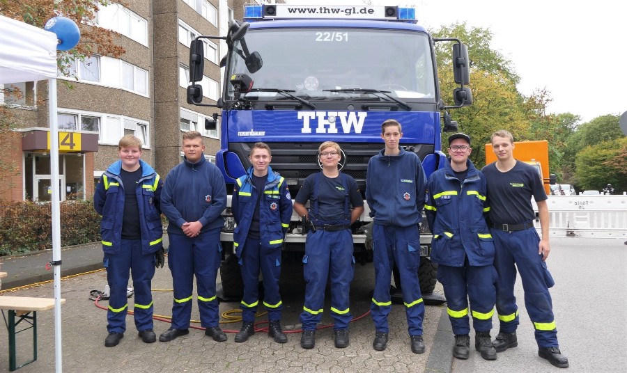 Von einer 15 Meter langen Rollenrutsche fühlten sich die Kleinen angezogen. Nicht zum Rutschen sondern zum  Ausprobieren animierte der rollende Werkzeugkasten des Technischen Hilfswerks.