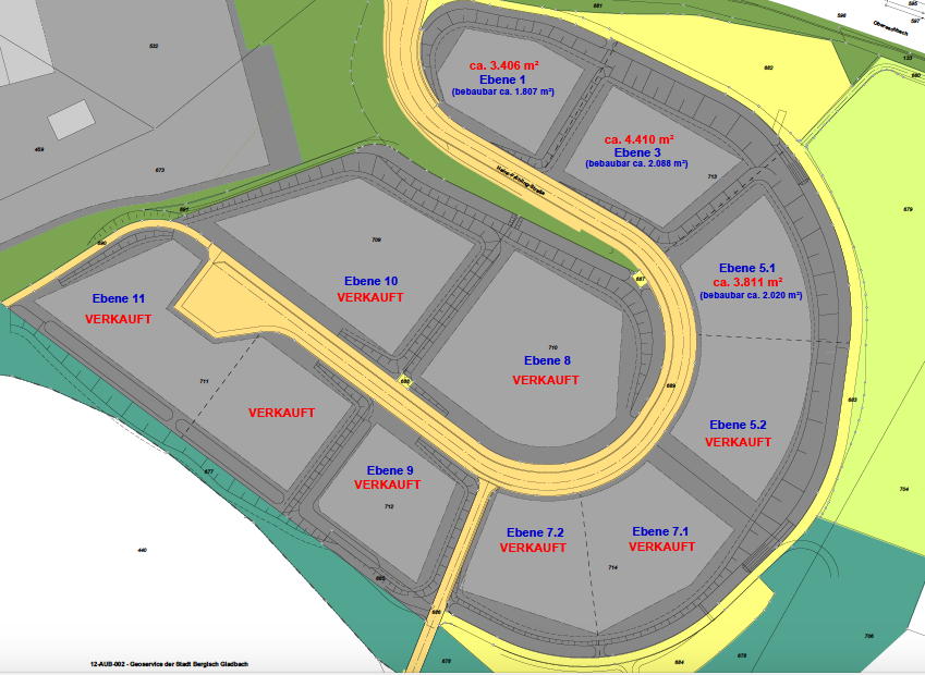 Es sind immer noch drei Gewerbeflächen, d.h. die Ebene 1, die Ebene 3 und die Eebene 5.1. noch als “nicht verkauft” gekennzeichnet.