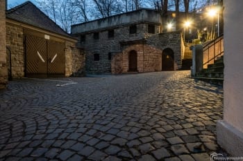 Es waren Gefängniszellen, doch das ist lange her. Nicht zuletzt die Pflastersteine verraten, wo Thomas Merkenich dieses Motiv gefunden hat: Im Hof des historischen Rathauses Stadtmitte.