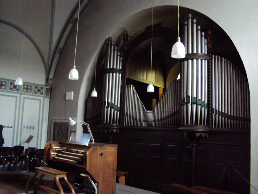 Die alte Orgel war im Gewölbe der Kirche rund um das Fenster aufgebaut. Die neue Orgel enthält viele noch brauchbare Teile der alten Orgel. Der alte Orgelprospekt steht immer noch in dem Gewölbe. Auch viele Orgelpfeifen sind wie früher um das Fenster herum aufgebaut.