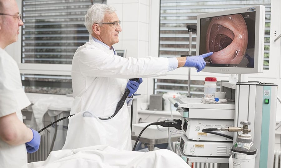 Für das Endoskopie-Verfahren mit der Bärenfalle ist keine Operation und keine Vollnarkose erforderlich, sagt Dr. Stefan Korsten. Patienten erleben den Eingriff nicht anders als bei einer klassischen Darmspiegelung – schonend und wenig belastend. In der Regel bleiben die Patienten zwei Tage im Krankenhaus und können dann nach Hause gehen. Eine Operation mit Bauchschnitt, ein ausgedehnter Klinikaufenthalt, zum Teil unangenehme Narkosenachwirkungen und längere Erholungszeit bleibt ihnen so erspart.