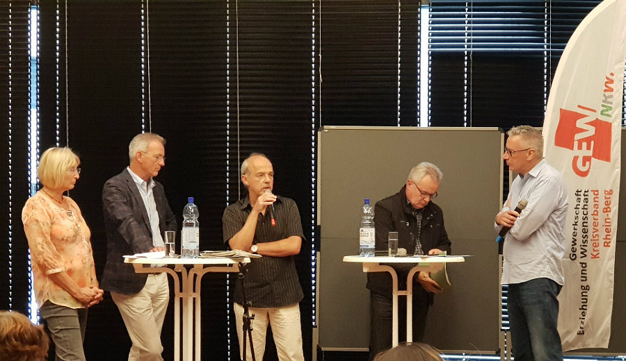 Damit das geschehe, müsse politischer Druck aufgebaut werden. Wie wäre es denn, fragt Moderator Nikolaus Kleine, wenn einer der nächsten Freitage mal genutzt werden für einen Sternmarsch von Schülern, Lehrern und Eltern nach Düsseldorf?