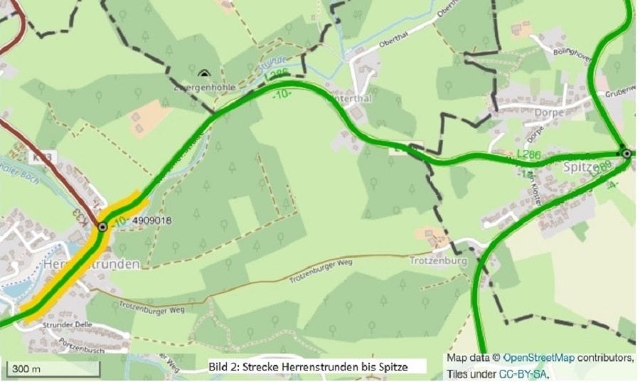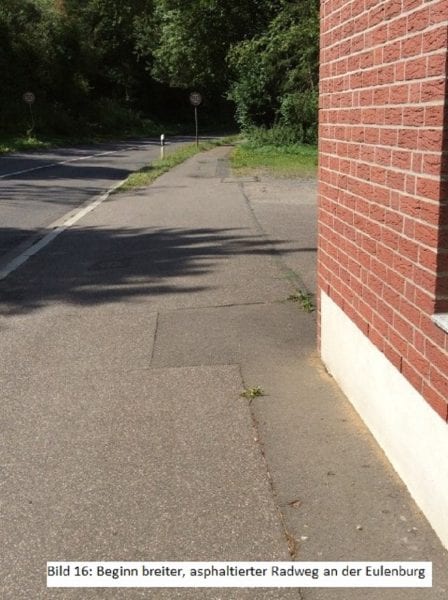 Aber Pustekuchen. Radfahren ist auf der L 286 durch die rasenden Autos dort unzumutbar und zu gefährlich. Man kann sich tatsächlich nur einmal im Jahr zum Strundetalfest auf diese Strecke wagen. Die Politiker, die das “verbrochen” haben, sollten sich was schämen.