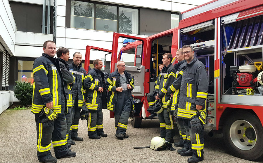 Vertreter des Krankenhauses bedankten sich für den schnellen und professionellen Einsatz. „Heute ist zwar Freitag, der 13. – aber dennoch ein Glückstag”, sagte Jens Brockmann, Verwaltungsdirekt der GFO Rhein-Berg.