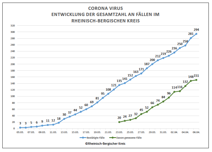 Die Zahl der bestätigten Corona-Infektionen im Rheinisch-Bergischen Kreis ist am Montag auf 294 gestiegen. Diese Mal liegt der Schwerpunkt in Wermelskirchen.