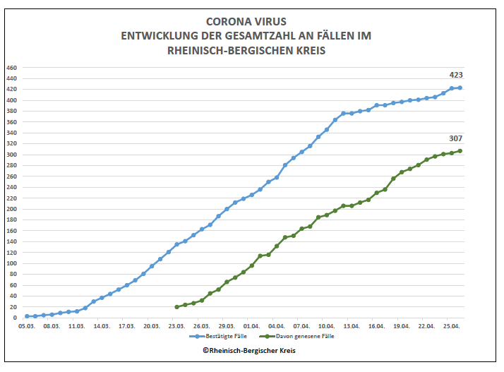 • 13 Todesfälle, davon 9 in Bergisch Gladbach