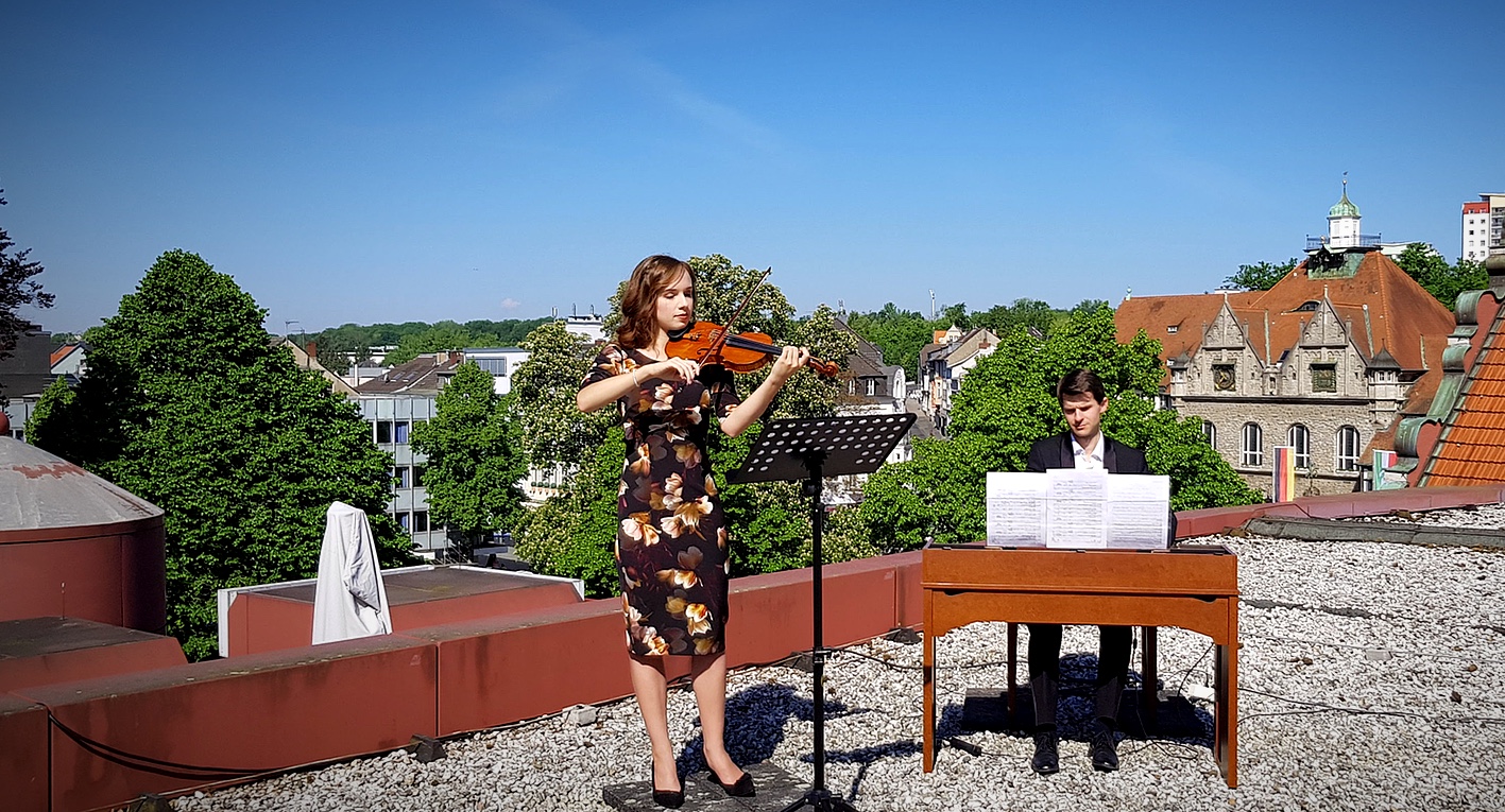 Bild des Tages: Lea Brückner, Roman Salyutov und weitere Solisten des Sinfonieorchsters Bergisch Gladbach haben über den Dächern der Innenstadt Mozart gespielt. Diese Lieferung des #Kulturkuriers kommt am Wochenende, einen ersten Ausblick bekommen Sie auf Instagram. Bitte beachten Sie auch den Spendenaufruf zugunsten der freien Künstler.