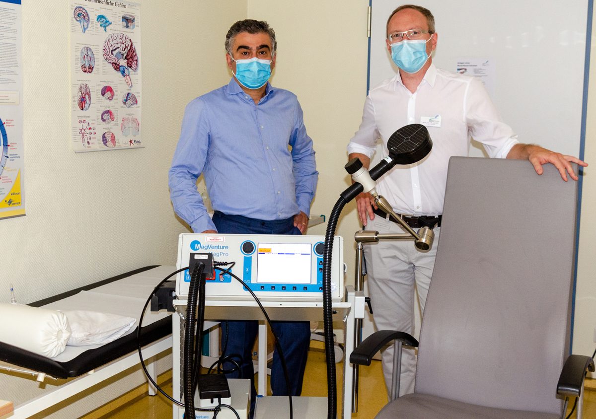 „Wissenschaftliche Studien konnten zeigen, dass die rTMS in der Schmerztherapie insbesondere bei den medikamentös häufig nur schwer beherrschbaren neuropathischen Schmerzen eine wirksame und gut verträgliche Behand­lung darstellt“, sagt PD Dr. med. Fritz-Georg Lehnhardt, Chefarzt der Psychiatrie.