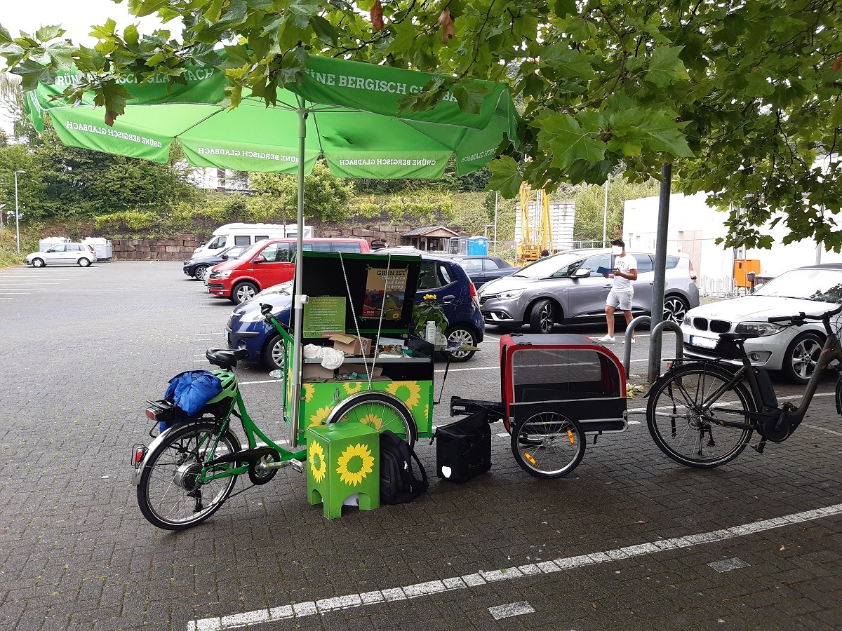 Was man in den kommenden Wochen nicht sehen wird, ist ein Auto mit meinem Konterfei oder ähnlichem. Ich habe den gestrigen Tag komplett per E-Bike gestaltet und das ist auch der Plan für den weiteren Wahlkampf.
