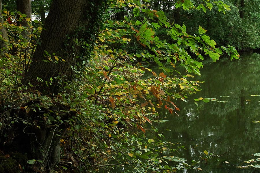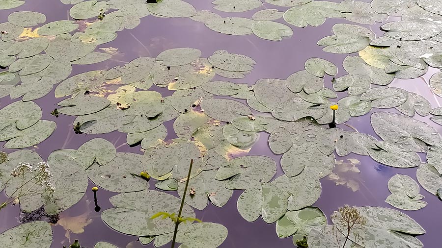 Die Seerosen hörten auf zu blühen und die Blätter wurden gelb. Ende Oktober sind nur noch ganz wenige Blätter und ein paar verkrüppelte, kleine, gelbe Blüten da.