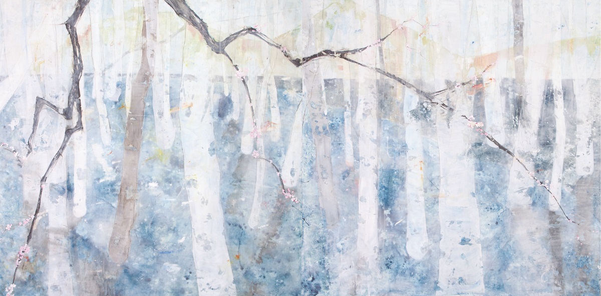 Masaki Hagino: Der sinnliche Wald in mir VIII, Mischtechnik auf Leinwand, 100 x 150 cm, 2017, Foto: Masaki Hagino