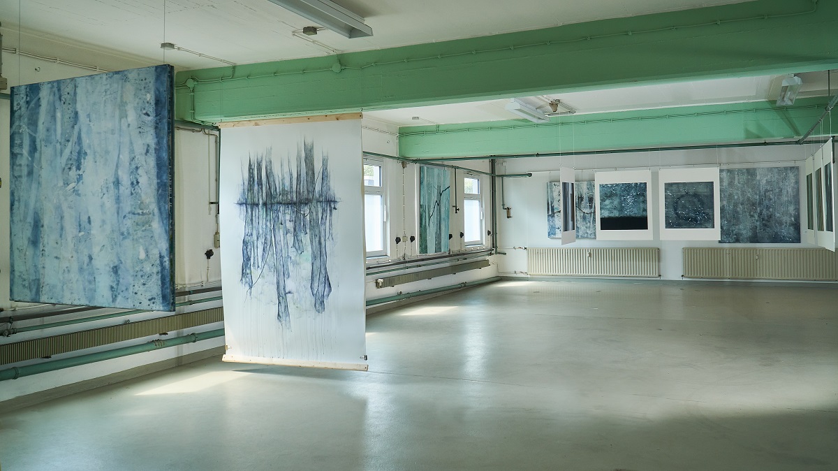 Die exzellente Werkauswahl der Galeristin und Kunsthistorikerin Dr. Ursula Clemens-Schierbaum präsentiert selbstbewusste Studien (“study 0-8”, 2018) neben Experimenten in der Technik der Cyanotypie, ein altes fotografisches Edeldruckverfahren mit blauen Farbtönen (“blue print”, 2010-11).