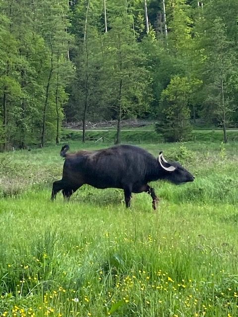 Das diese Wiese mit den Wasserbüffeln im Naturschutzgebiet Volbachtal liegt, das sich zwischen Moitzfeld, Herkenrath und Immekeppel erstreckt könnte vielleicht heute unter Pandemiebedingungen auch noch von Interesse sein. Erholung direkt vor der Haustür in vielfach unberührter Natur, nicht nur für die Menschen aus Immekeppel.