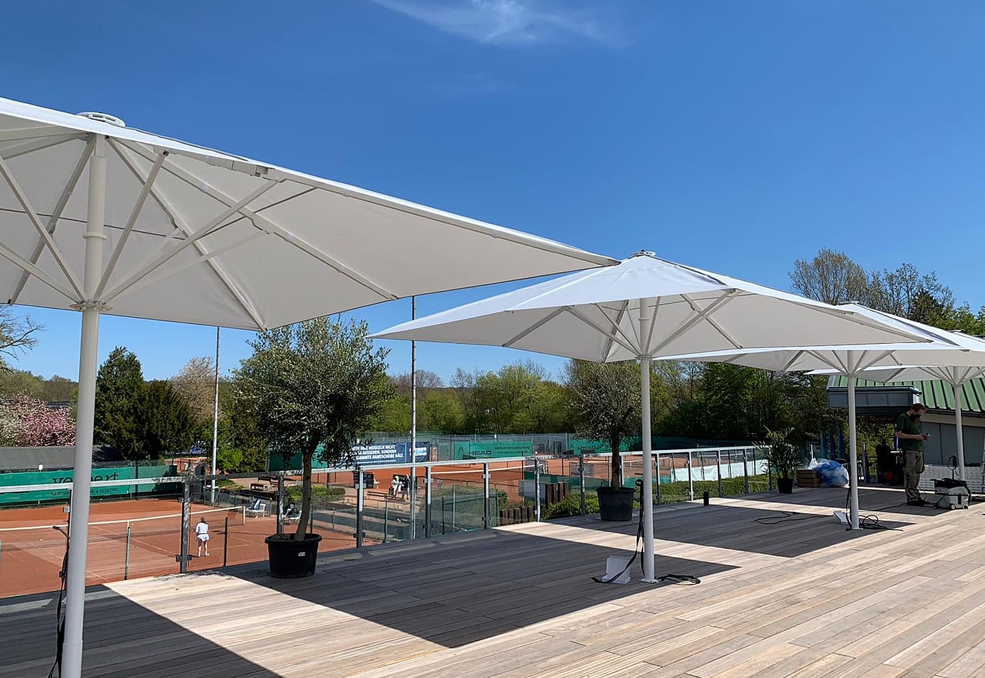 Gerade vor den Herausforderungen der Corona-Pandemie bietet die neue großzügige Terrasse eine ideale zusätzliche Fläche sowohl für den Verein als auch für die Gastronomie „Rossini“. Design und Materialien der insgesamt 100 qm großen Sonnen-Terrasse sind modern und zugleich sehr einladend. Jeder Platz bietet einen idealen Blick auf die Anlage.