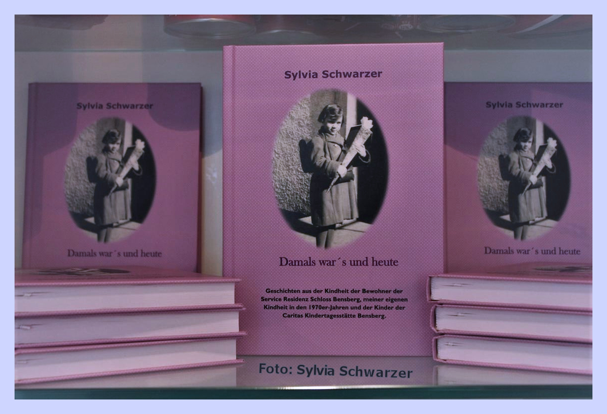 „Damals war’s und heute” ist ein Gemeinschaftswerk von Sylvia Schwarzer, Bewohnern der Service-Residenz, der Buchhandlung Funk und der Druckerei Brocker. Das Buch erzählt Geschichten aus den Kindheitserinnerungen der Bewohner und stellt die Kinderwünsche von heute gegenüber. Der Erlös kommt dem Heilpädagogischen Kinderheim in Bensberg zugute.