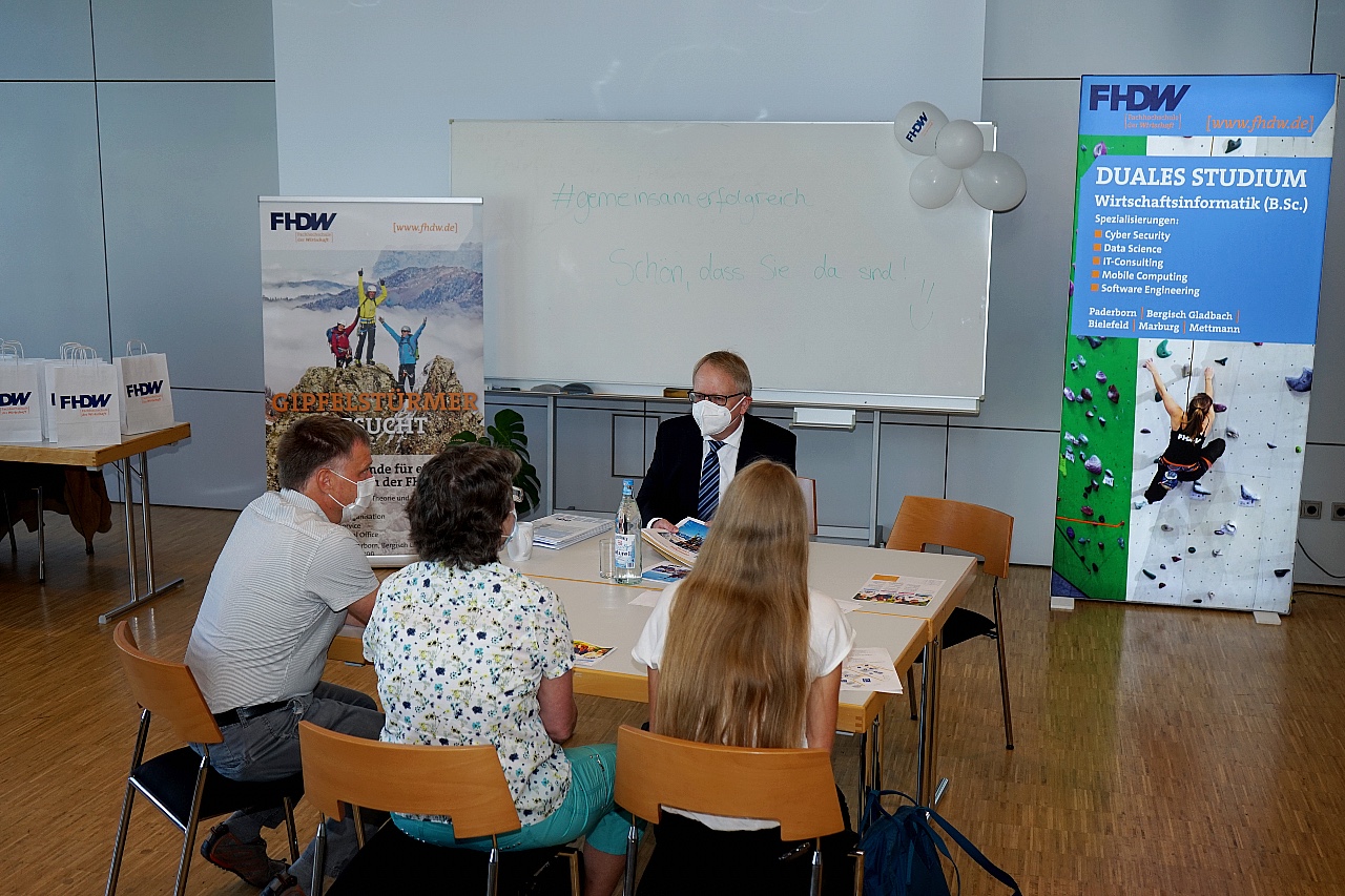 Zum ersten Mal nach zwei Jahren fand der Campus Day der Fachhochschule der Wirtschaft in Bergisch Gladbach (FHDW) in Präsenzform statt. Unter strengsten Hygienemaßnahmen kamen so potenzielle Nachwuchskräfte und Unternehmen vor Ort zusammen. Die Besucherzahl pro Raum war wegen Corona begrenzt – die Gespräche mit den Personalverantwortlichen dafür umso intensiver.