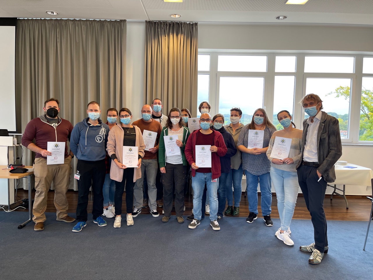 Für die Weiterbildung mussten die Teilnehmer zunächst ein umfangreiches E-Book durcharbeiten und anschließend einen zweitägigen Praxiskurs unter der Leitung von Dr. Stüttgen absolvieren. Dafür waren extra zwei Ausbilder vom Lehrinstitut für präklinische Rettungsmedizin in München nach Bergisch Gladbach gekommen. Die Abschlussprüfung wurde von allen Teilnehmern bestanden.