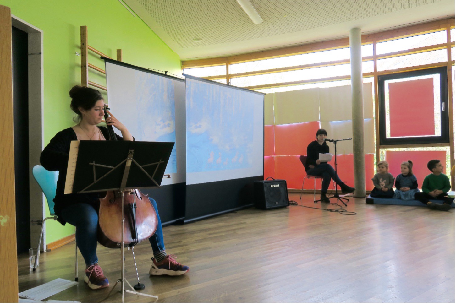 Siebzehn aufgeregte Kinder aus dem FRÖBEL Kindergarten im ZAK gingen unter Leitung von Susanne Barr auf die Bühne, um mit ihren Trommeln und Rhythmus-Eiern das Bilderbuch „Der Kleine Troll” musikalisch lebendig werden zu lassen. Begleitet wurden die Kinder von Heike Herrmann-Behrendt am Klavier und Miriam Griess auf dem Cello; die Geschichte wurde gelesen von Marie Höppner.