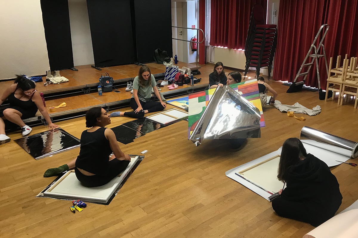 Am Ende der Probenwoche sind wir im Theater noch drei JE-lerinnen (von insgesamt zehn), unsere Regisseurin und unsere Künstlerin, die uns mit dem Bühnenbild unterstützt. Wir alle haben keine Symptome, negative Tests und positive Energie, um gemeinsam noch möglichst viel aus der Zeit rauszuholen!