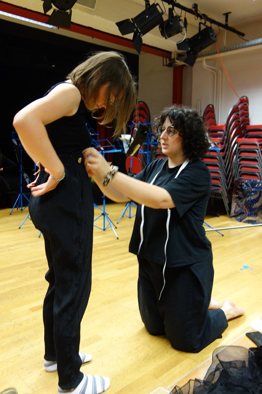Line bei der Anprobe mit Kostümbildnerin Nadine.