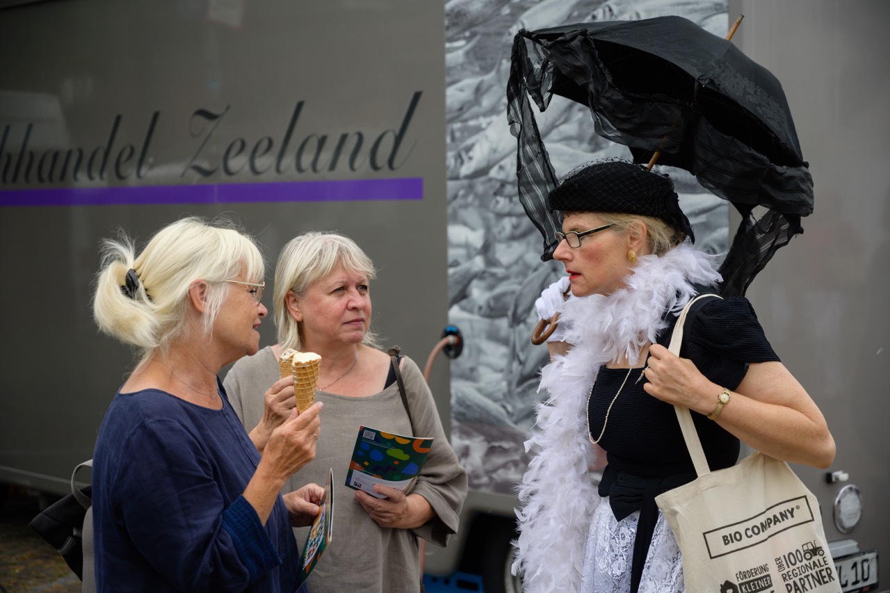 Wer am Samstag um die Mittagszeit in Bergisch Gladbach unterwegs war, konnte was erleben. Zum zweiten Mal machte ein gutes Dutzend Darsteller:innen die Fußgängerzone und den Marktplatz zur Bühne, mit einigen eindrücklichen Begegnungen. Eine Fotoreportage.