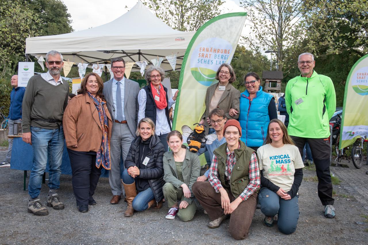 Das Foto oben zeigt von links oben: Michael Müller (Ernährungsrat), Bondina Schulze (Bürgermeisterin Rösrath), Stephan Santelmann (Landrat RBK), Silvia Fröhning (Ernährungsrat), Dr. Barbara Steinrück (Ernährungsrat), Katharina Walckhoff (WandelTAGE Minden), Stephan Tulke (Ernährungsrat) / Unten von links: Linda Eiermann (Ernährungsrat), Holger Giebel (Theater for future) plus zwei Teammitglieder, Silke Klemm (Klemm Design/ Organisatorin Kidical Mass Demo)