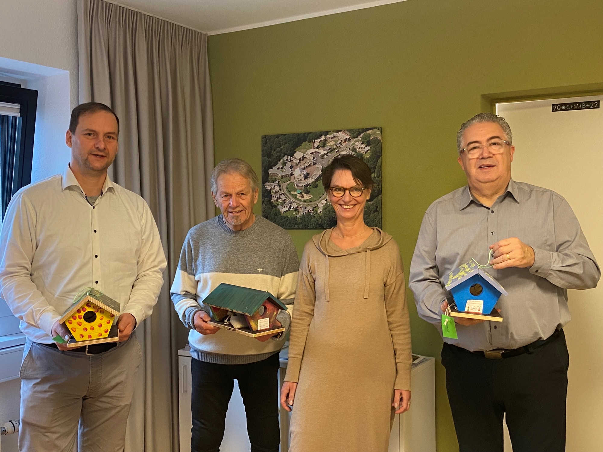 Als Dankeschön für ihr großartiges Engagement zugunsten des Kinderdorfes überreichte Kinderdorfleiterin Jutta Menne Florian Bethe, Eddi Stoffel und Valentino Bruno (v.l.) Vogelhäuser, die die Kinder des Kinderdorfes gebastelt hatten. Foto: Bethanien Kinderdorf