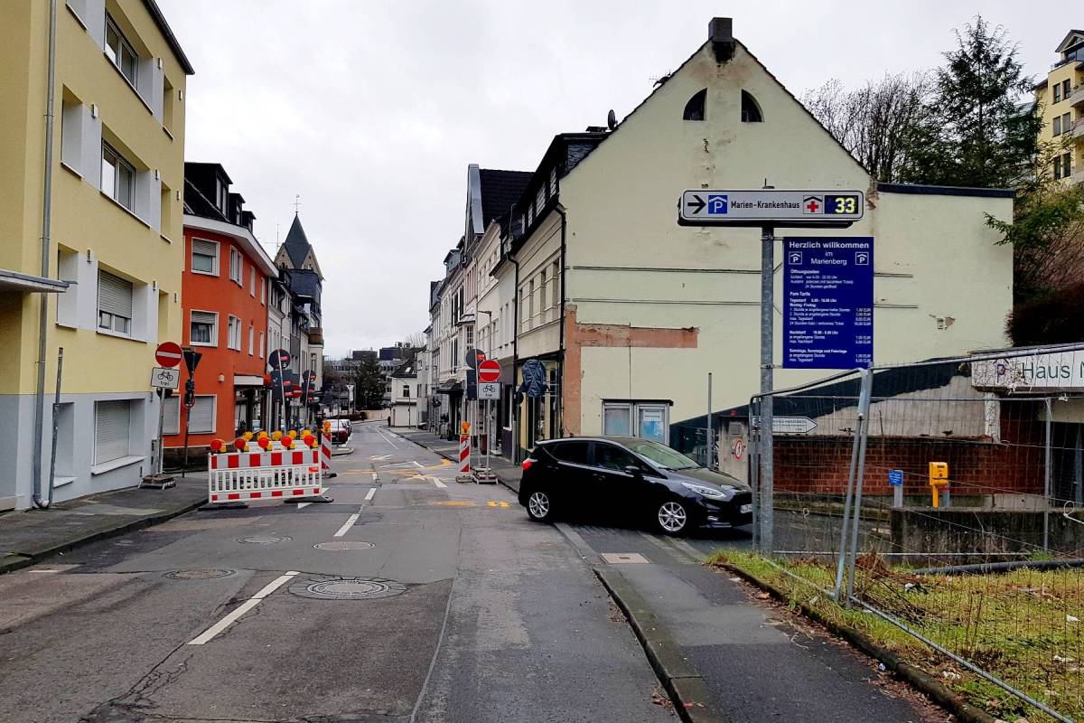Wenn man ins Parkhaus Marienberg möchte, sollte man von nun an natürlich gar nicht erst in die untere Laurentiusstraße fahren, sondern, wie bereits im Bürgerportal erläutert, über die Straße am Broich.