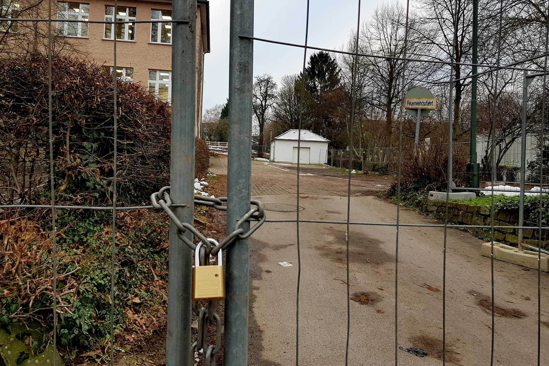 Bolzplatz, Bäume und Wiese sind verschwunden. Hier soll die Notschule in modularer Bauweise gebaut werden.