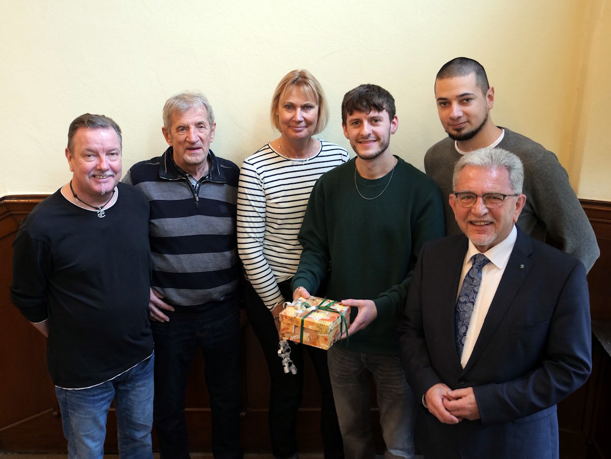 v.r.n.l.: Jürgen Münsterteicher, Wolfgang, Weber, Barabara Weber, Jannis Kessel, Marten Pigorsch, Josef Willnecker