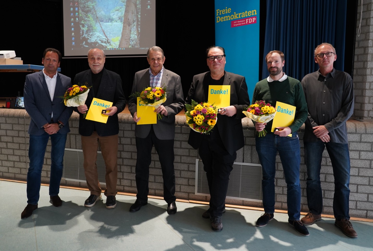 Viele langjährige Mitglieder wurden geehrt, darunter auch Michael Becker, stellvertretender Landrat, für 40 Jahre aktive Parteimitgliedschaft. Acht Mitglieder erhielten eine Ehrung für 50 Jahre Mitgliedschaft bei den Freien Demokraten.